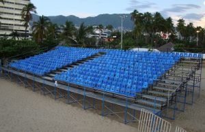 La grada de butacas elevada se adapta a las medidas y capacidades según las necesidades del cliente y la ubicación del terreno, ahora denominado venue.